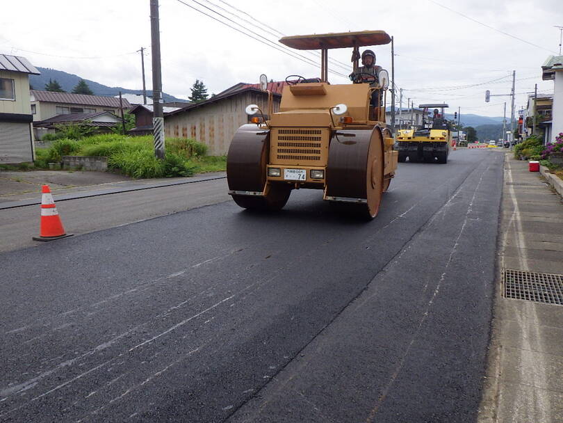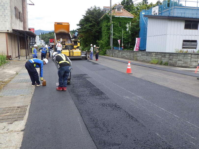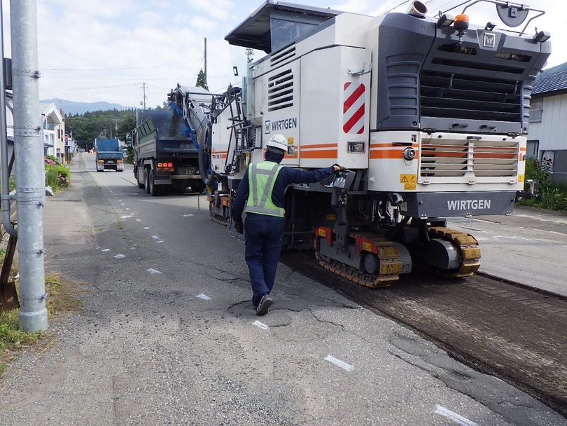 過疎対策事業 市道生保内中央線舗装工事施工実績 2025.09.19工事場所 仙北市生保内字武蔵野 地内工 期 令和7年6月18日から令和7年9月12日発 注 者 仙北市工事概要 路面切削1830m2 舗装1830m2 区画線540mを行って、傷んだ舗装を直しました。着手前完成路面切削状況アスファルト合材敷均し状況アスファルト合材転圧状況