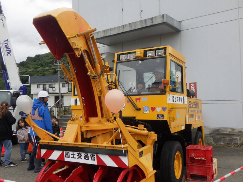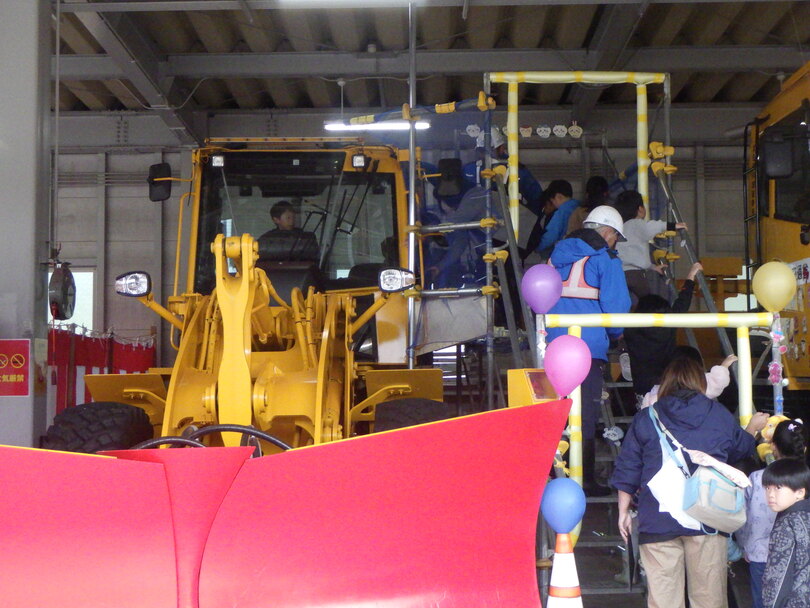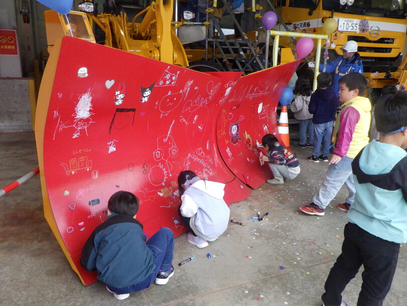 その後は、園児との除雪機械ふれあい体験を実施しました。除雪機械に乗車し操作をしたり、高所作業車体験や除雪機械へお絵描きなど、楽しみながら除雪について学んでもらいました。