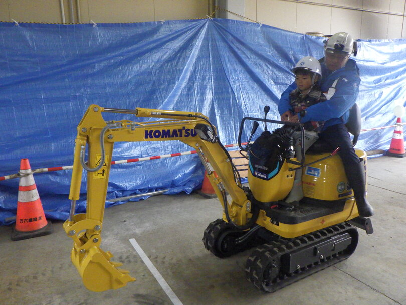 ミニバックホウ乗車体験 除雪機械へお絵描き