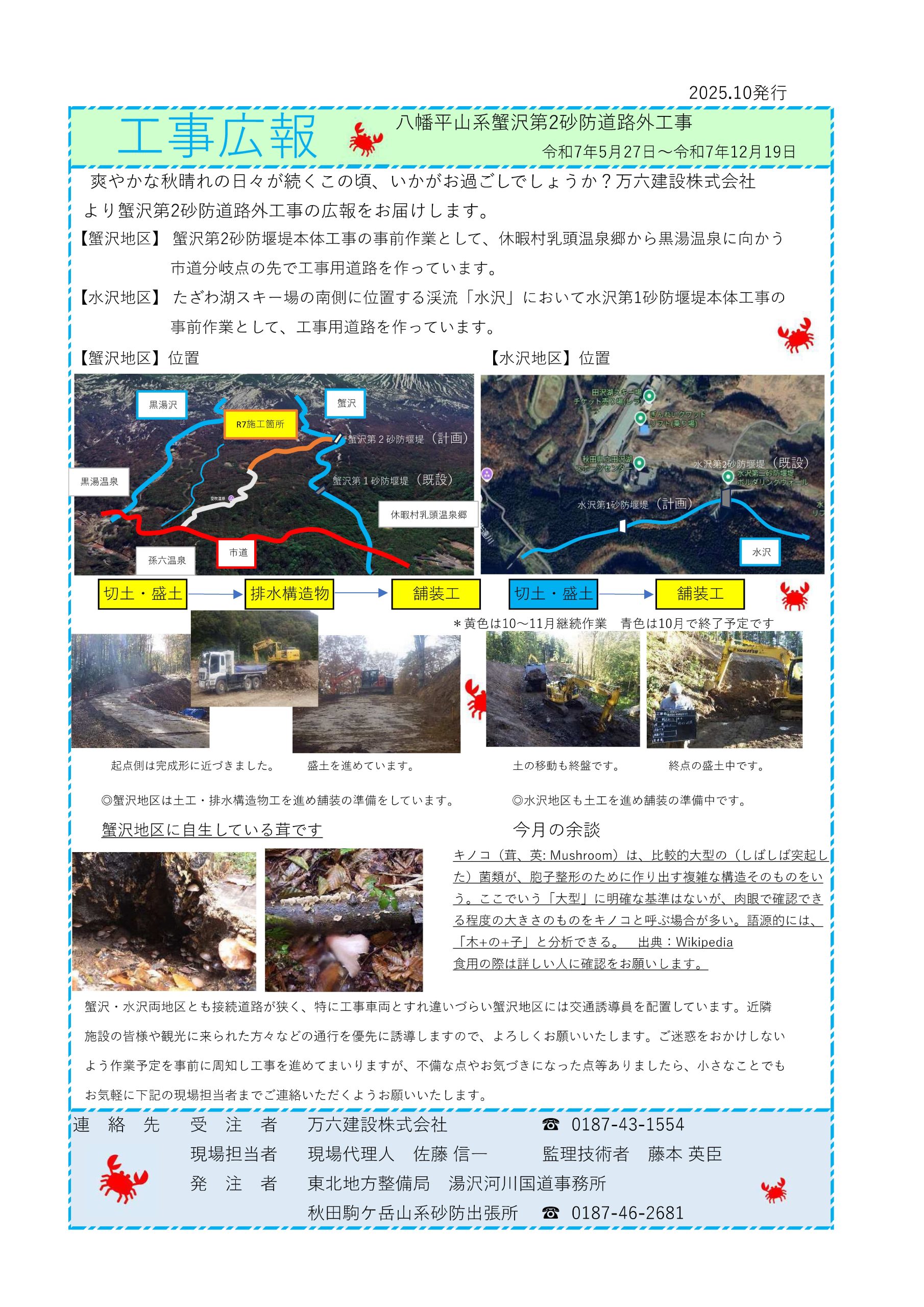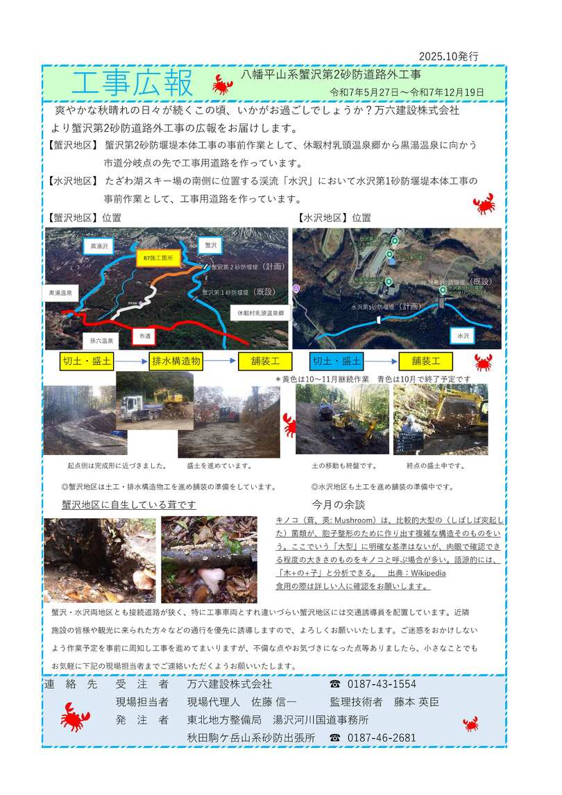 10月の八幡平山系蟹沢第2砂防道路外工事広報が発行されました。