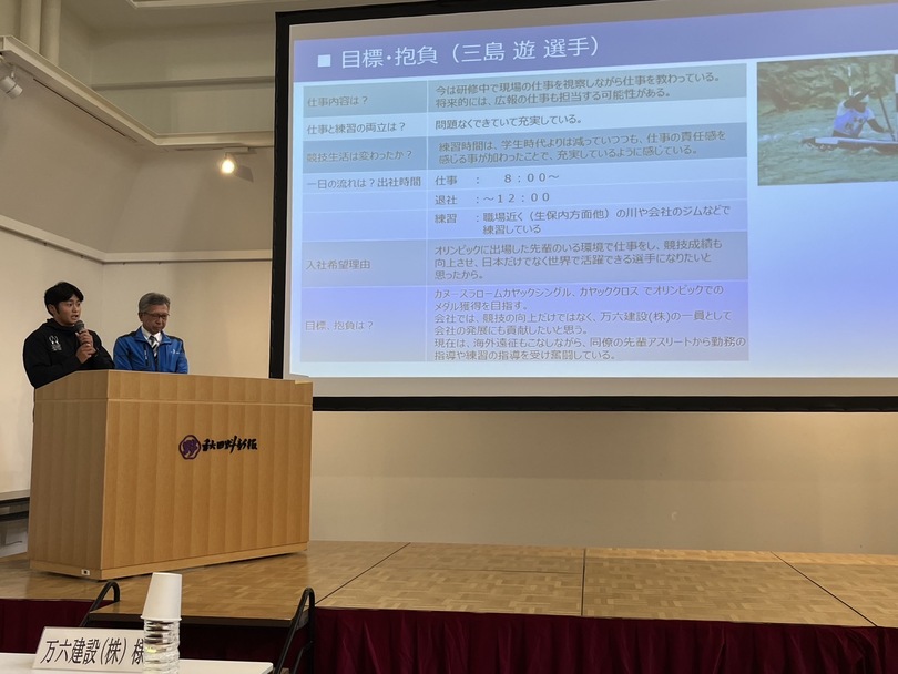 2025アスリート支援・企業セミナーカヌーチーム 2025.10.3010月28日(火)、さきがけホールで行われたアスリート支援・企業セミナーに三島遊と会社を代表して阿部常務が参加しました。感謝状贈呈式では県サポート事業適用企業に感謝状が贈られました。アスリート支援・企業セミナーでは令和7年度4月に就職をしたマッチング選手や企業の紹介などされました。感謝状贈呈式感謝状贈呈式アスリート支援・企業セミナーアスリート支援・企業セミナー