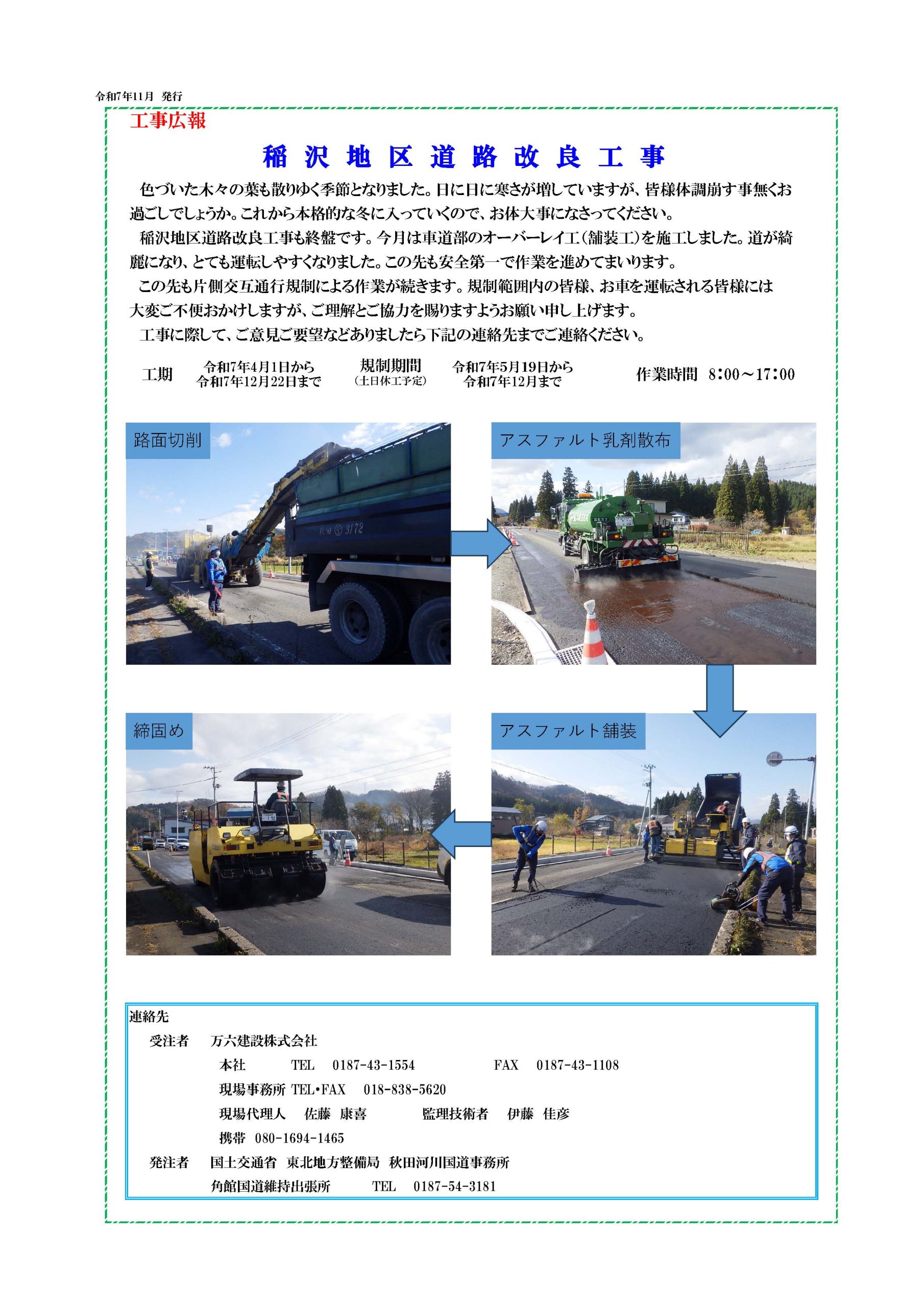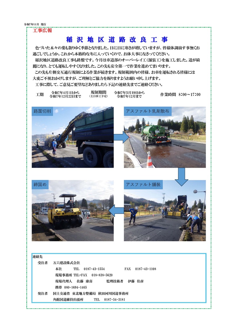 工事広報11月の稲沢地区道路改良工事広報が発行されました。
